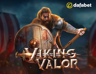 A medieval-themed adventure game featuring a fierce Viking warrior with a shield and axe, set in a battlefield environment, emphasizing heroic battles and rewards.